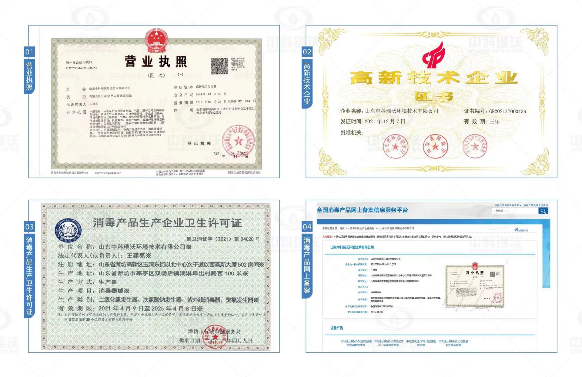 山東中科瑞沃環(huán)境技術(shù)有限公司是一家致力于環(huán)境治理的高新技術(shù)企業(yè),近年來公司先后推出實驗室廢水處理設(shè)備、醫(yī)療污水處理系列設(shè)備、中水回用設(shè)備等多個系列污水處理設(shè)備。現(xiàn)如今已經(jīng)擁有衛(wèi)生部頒布的《消毒產(chǎn)品生產(chǎn)企業(yè)衛(wèi)生許可證》,并且產(chǎn)品已在《全國消毒產(chǎn)品網(wǎng)上備案信息服務(wù)平臺》備案,均經(jīng)過第三方正規(guī)檢測機構(gòu)的檢測,符合國家標準。